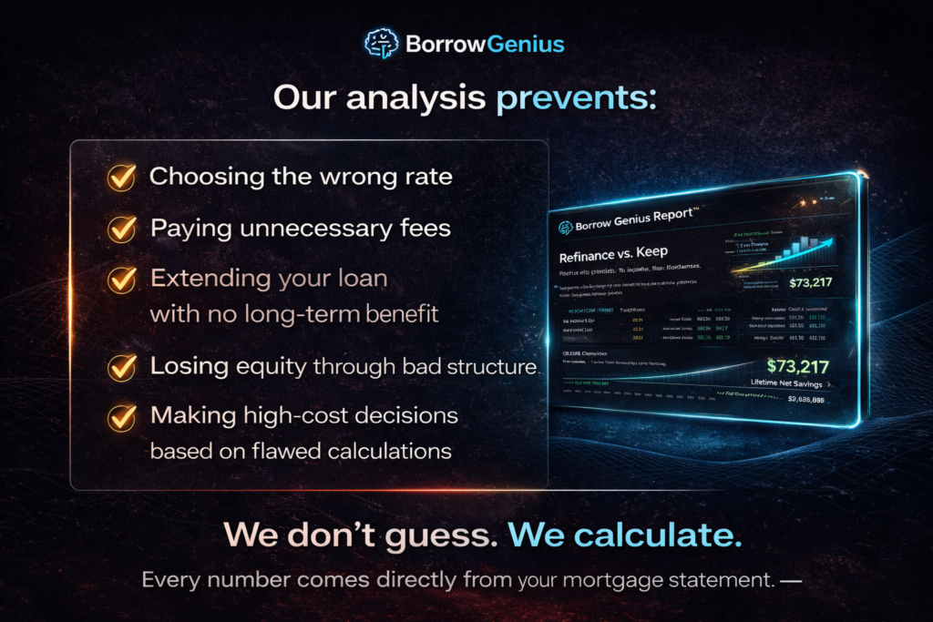 Every number comes directly from your mortgage statement — analyzed with advisory-level precision.